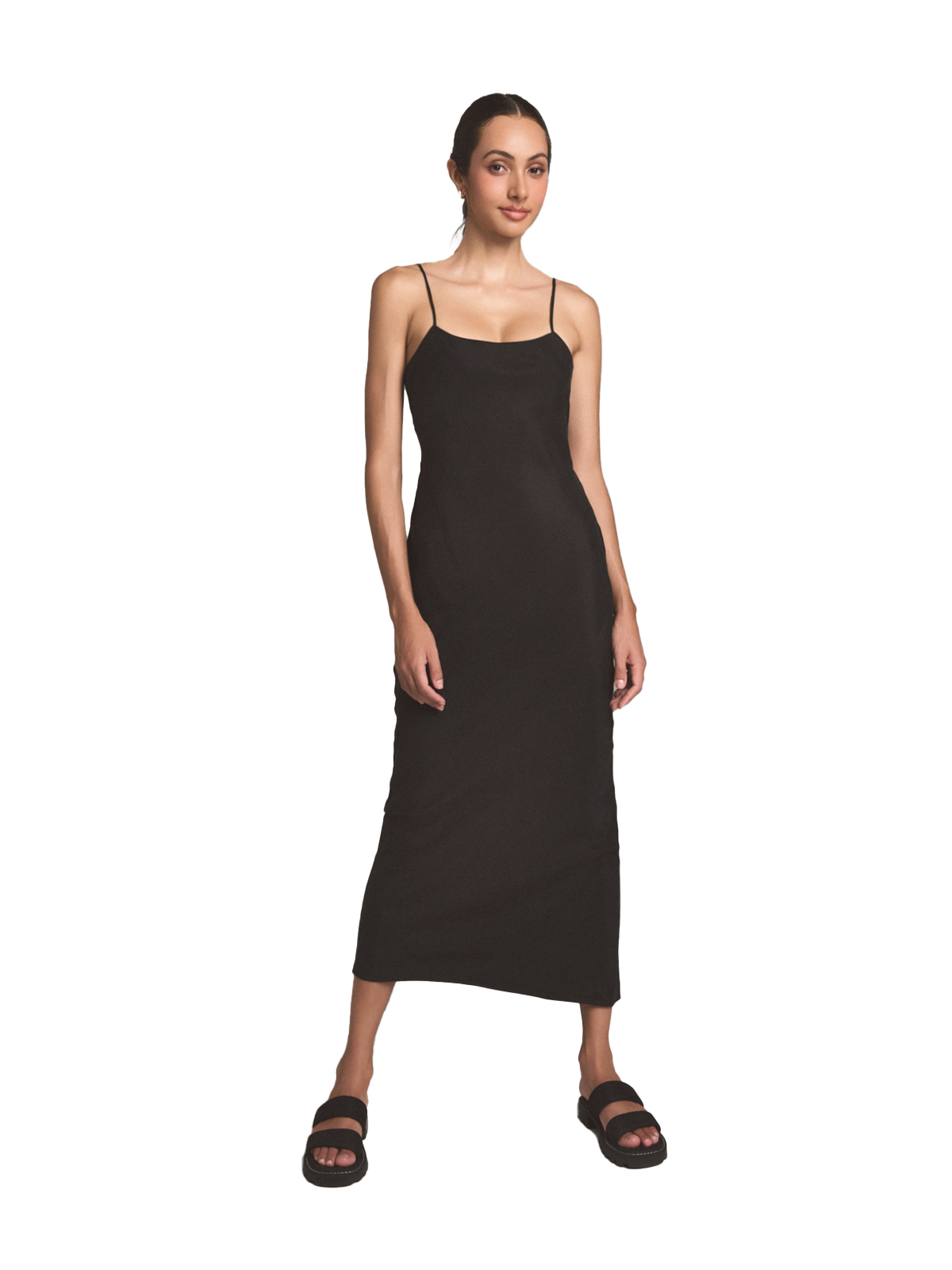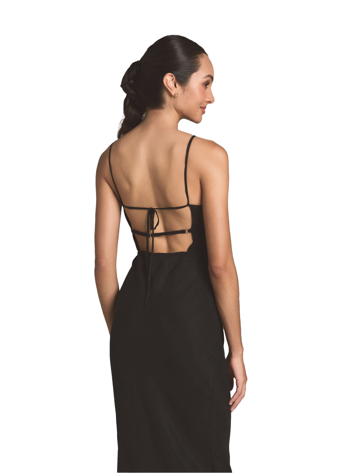 Discover the beauty of cupro in this elegant midi dress. Cupro is a sustainable vegan silk known for its smooth, slightly matte texture and its breathability. This dress features adjustable straps for a comfortable fit and a tie back for added detail. The body-conscious silhouette flatters the figure without being too constricting. It’s a perfect example of how innovative fabrics can create beautiful and versatile piece that you’ll reach for again and again.